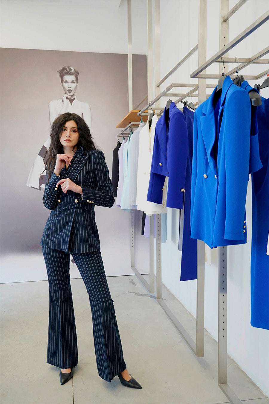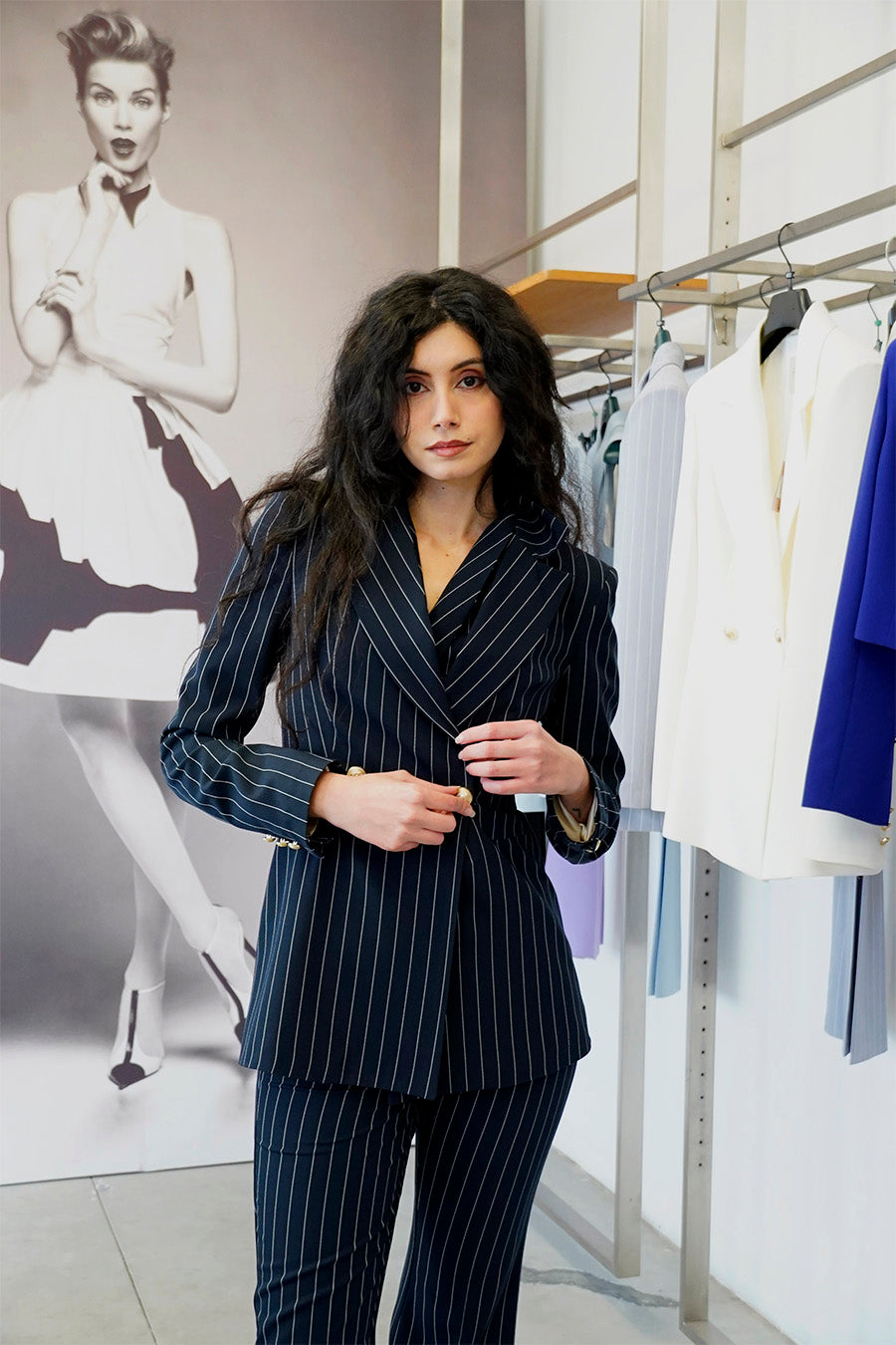 Tailleur Unica 3 pezzi colorazione Gessato Blu Scuro